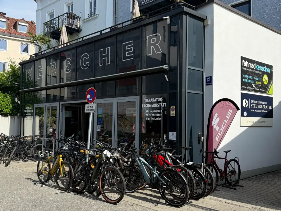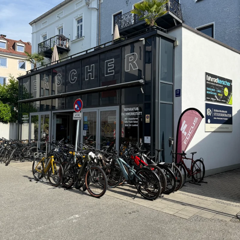 Fahrrad Kerscher ist ein Fahrradgeschäft in Rosenheim, welches seit nunmehr 1933 in vierten Generation seine Kunden als kompetenter Fahrraddienstleister zufrieden stellt. Jonas Kerscher ist der ideale Ansprechpartner rund um die Themen Fahrradkauf, Reparatur und Wartung. Vor allem auf dem Sektor der E-Bikes besticht Fahrrad Kerscher durch Kompetenz und Top-Marken. Besonders beliebt und äußerst bewährt sind Flyer Ebikes, Haibike, und Giant E-Bikes. Top-Ebikes sind mit einem Bosch, Panasonic oder Yamaha Antriebssystem ausgestattet.